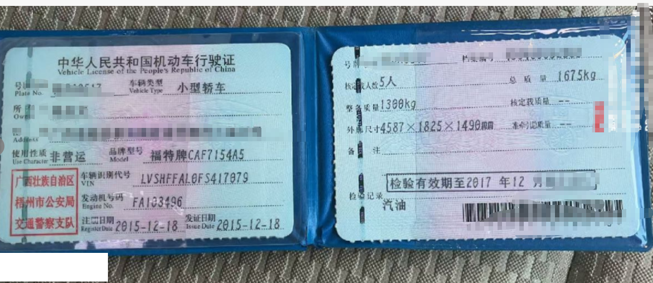 车牌号 桂****** 品牌 福特