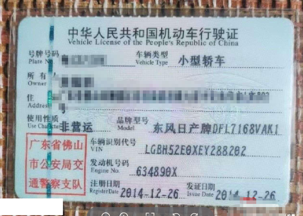 车牌号 粤****** 品牌 日产