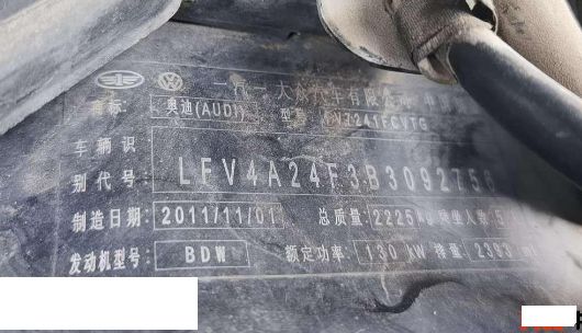 初次登记日期 2012-01-10 车辆名称 奥迪A6L
