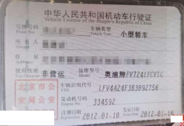 车牌号 京****** 品牌 奥迪