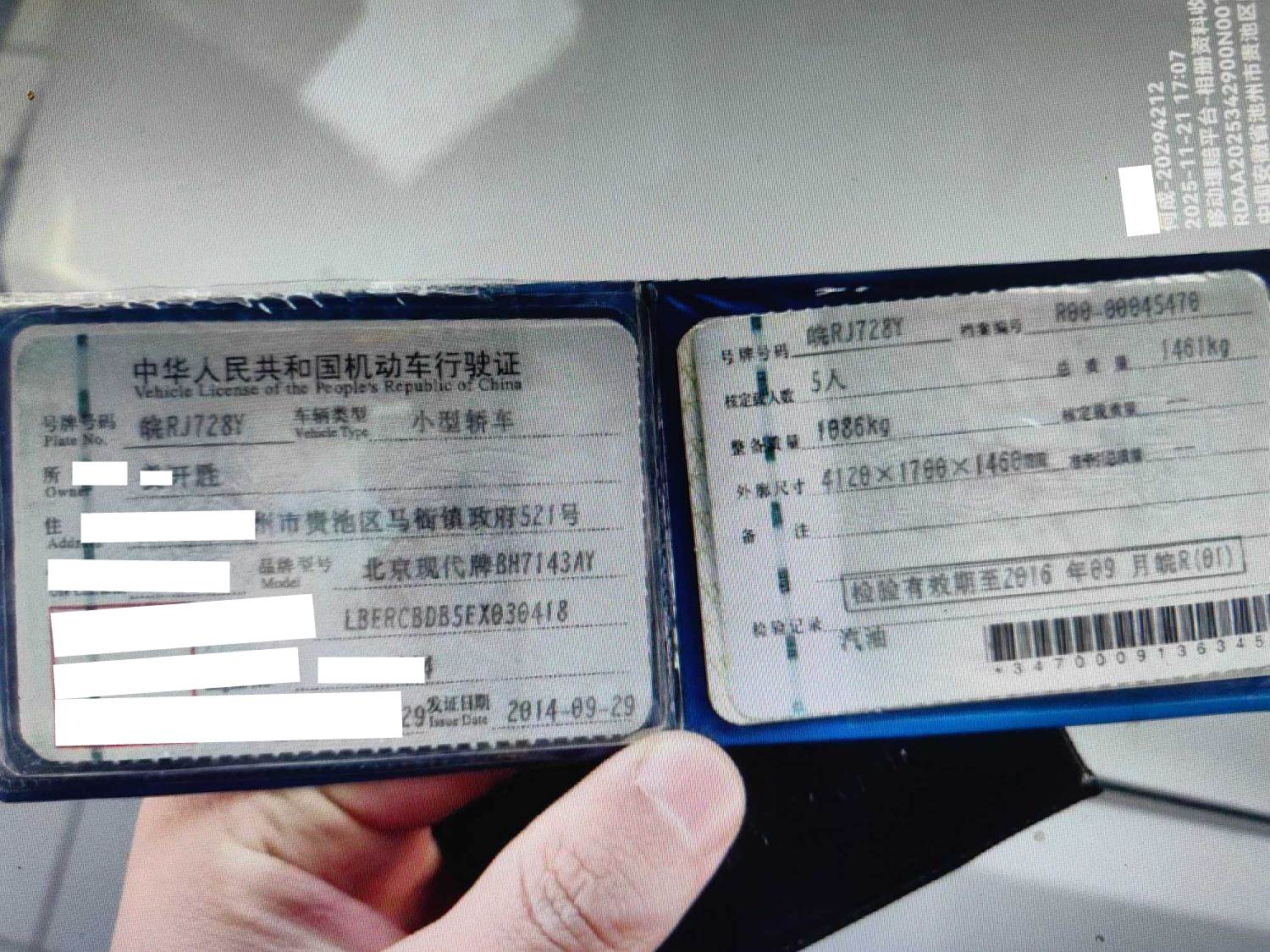 车牌号 皖****** 品牌 现代