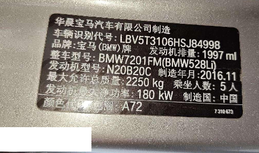 初次登记日期 2016-12-19 车辆名称 宝马5系