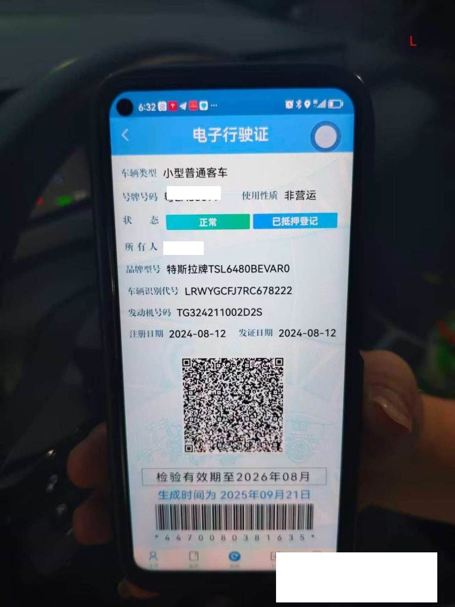 初次登记日期 2024-08-12 车辆名称 特斯拉 Model