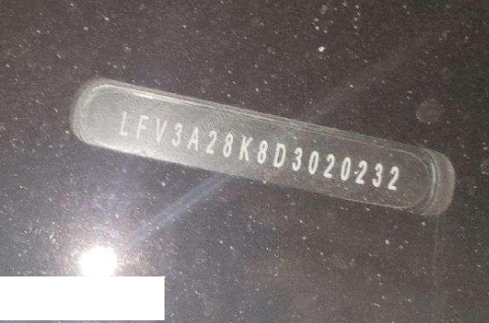 底盘号码 LFV3A28K8D3020232 变速箱类型 自动