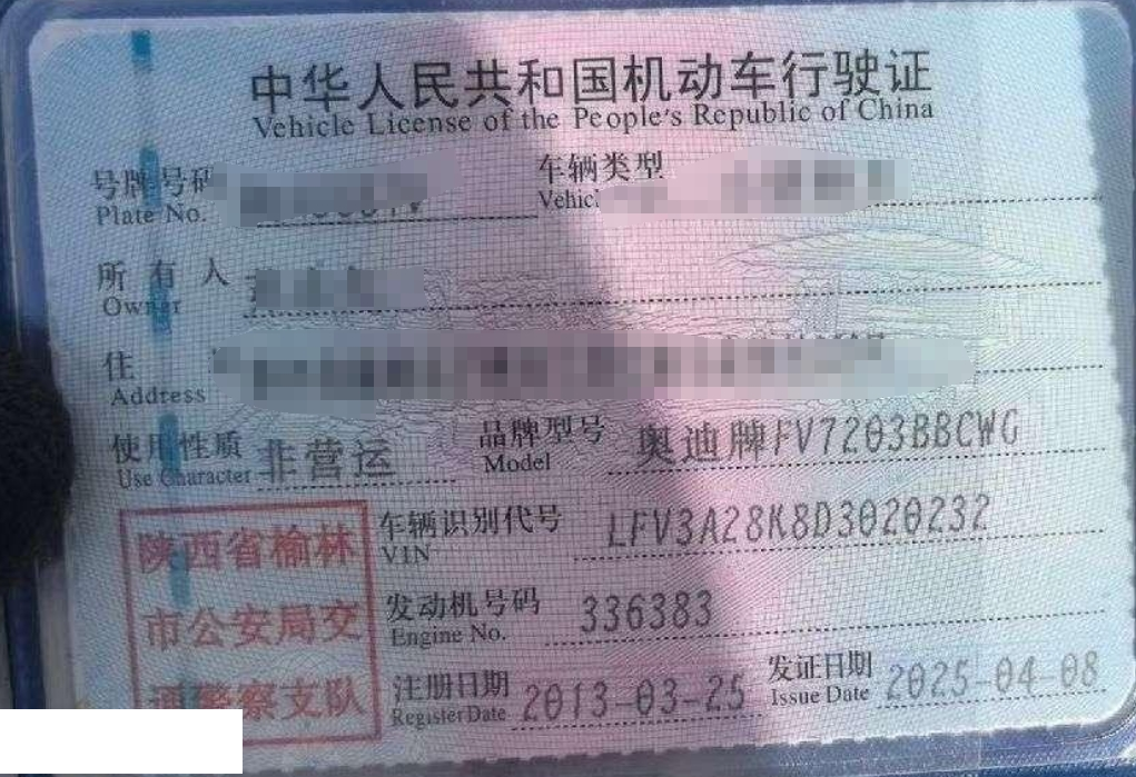 车牌号 陕****** 品牌 奥迪
