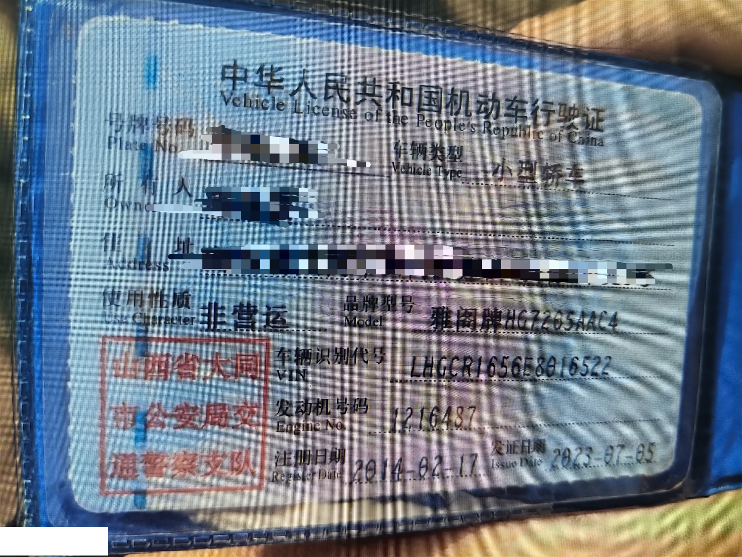 车牌号 晋****** 品牌 本田