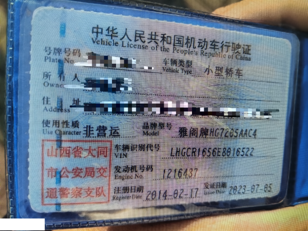 车辆归属地 山西省大同市 车辆停放仓库 大同