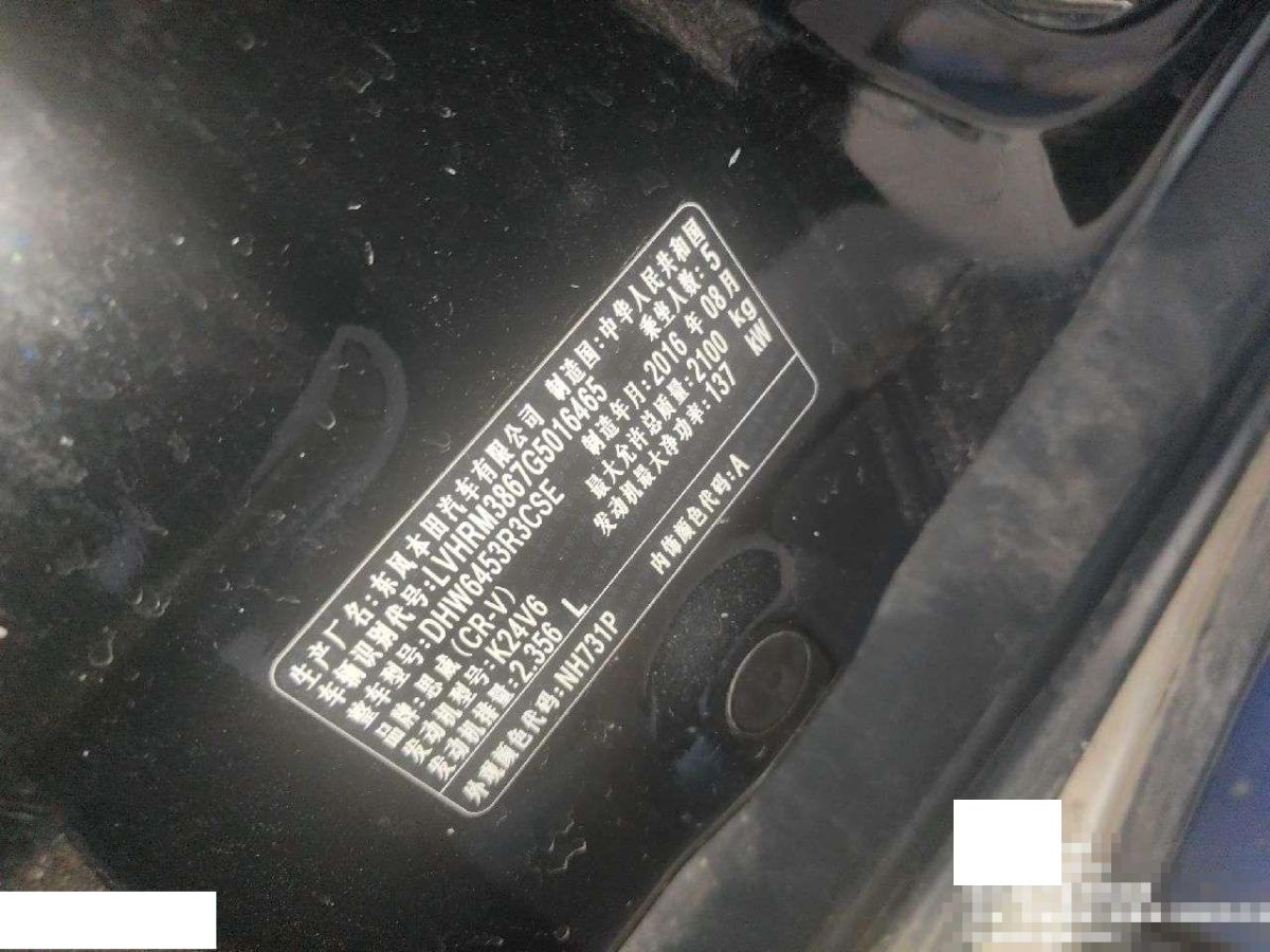 底盘号码 LVHRM3867G5016465 变速箱类型 自动