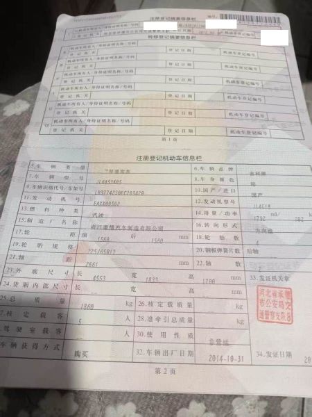 车架号是否受损 未知 使用性质 非营运