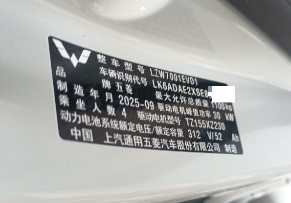 初次登记日期 2025-10-13 车辆名称 五菱汽车 宏光