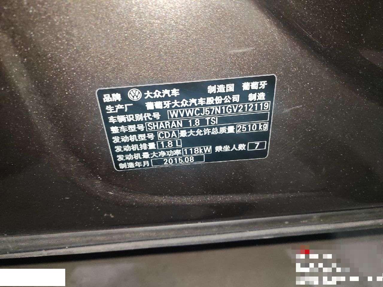 初次登记日期 2016-01-15 车辆名称 大众 夏朗