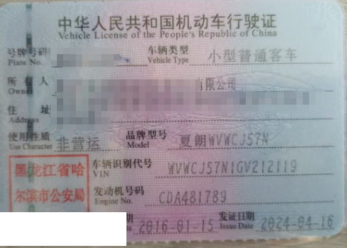车辆归属地 黑龙江省哈尔滨 车辆停放仓库 黑龙江省哈尔滨