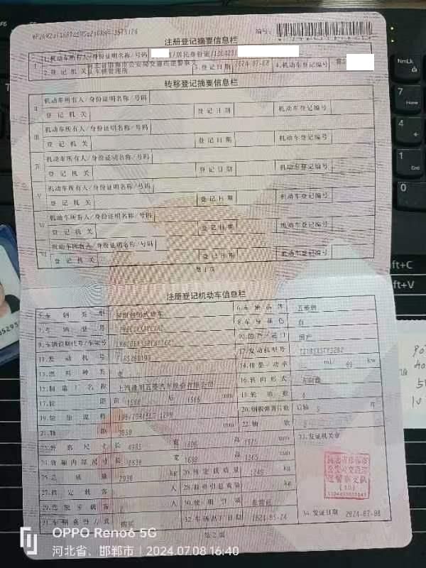 初次登记日期 2024-07-02 车辆名称 五菱汽车 五菱扬光