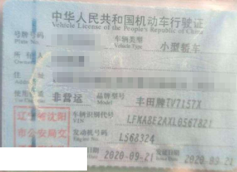 车牌号 辽****** 品牌 丰田