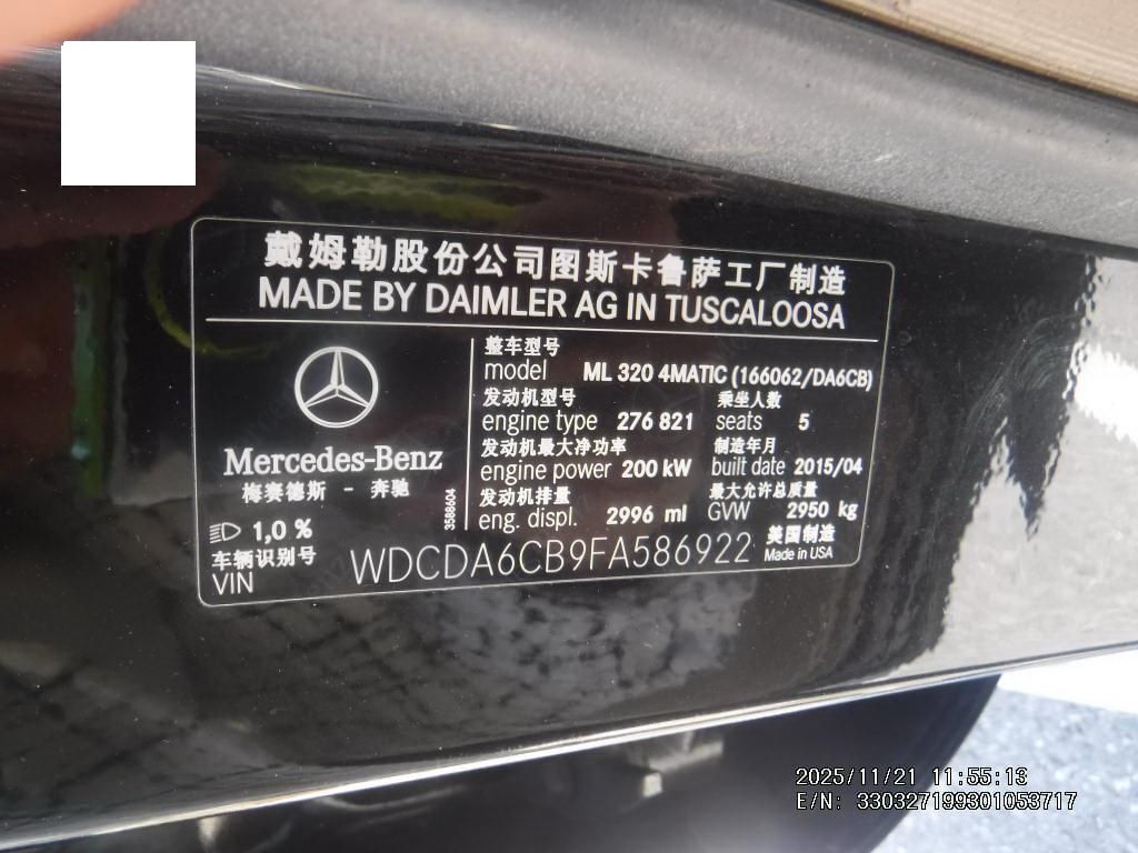 初次登记日期 2015-09-16 车辆名称 奔驰M级