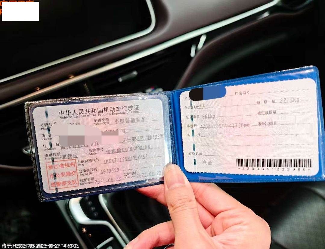 初次登记日期 2021-06-23 车辆名称 广汽传祺 传祺M6