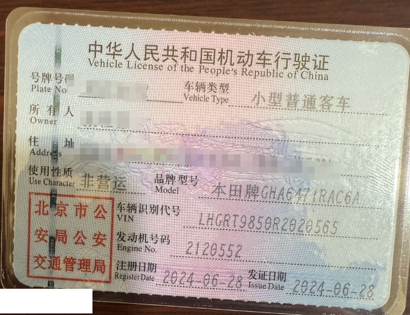 车牌号 京****** 品牌 本田