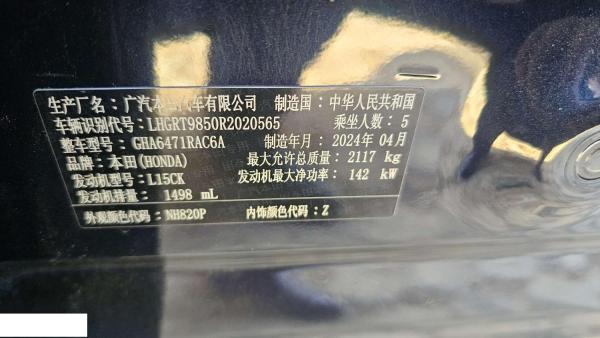 初次登记日期 2024-06-28 车辆名称 本田 皓影