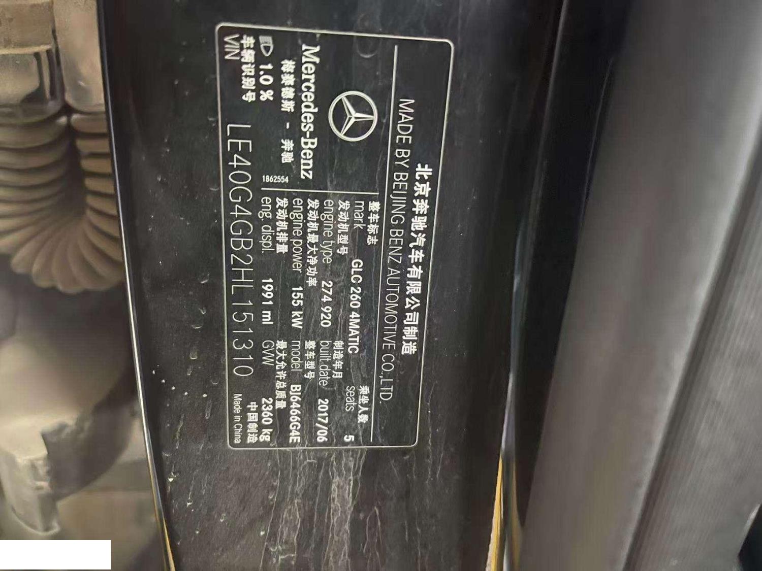 初次登记日期 2017-07-05 车辆名称 奔驰GLC