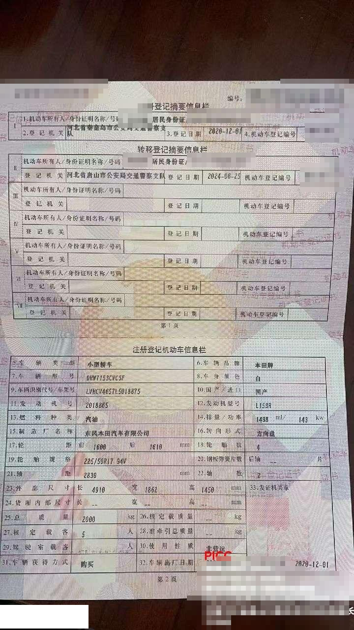 车牌号 冀****** 品牌 本田