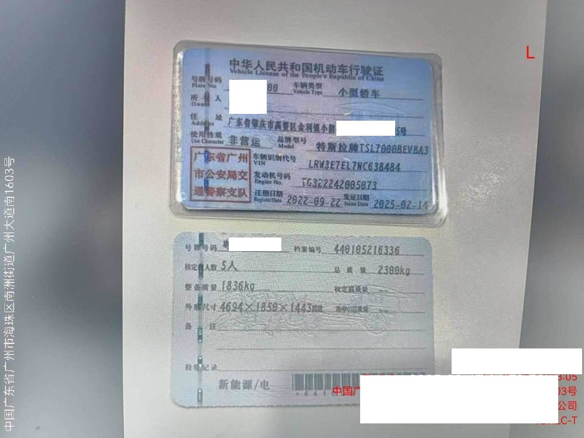 车牌号 粤****** 品牌 特斯拉