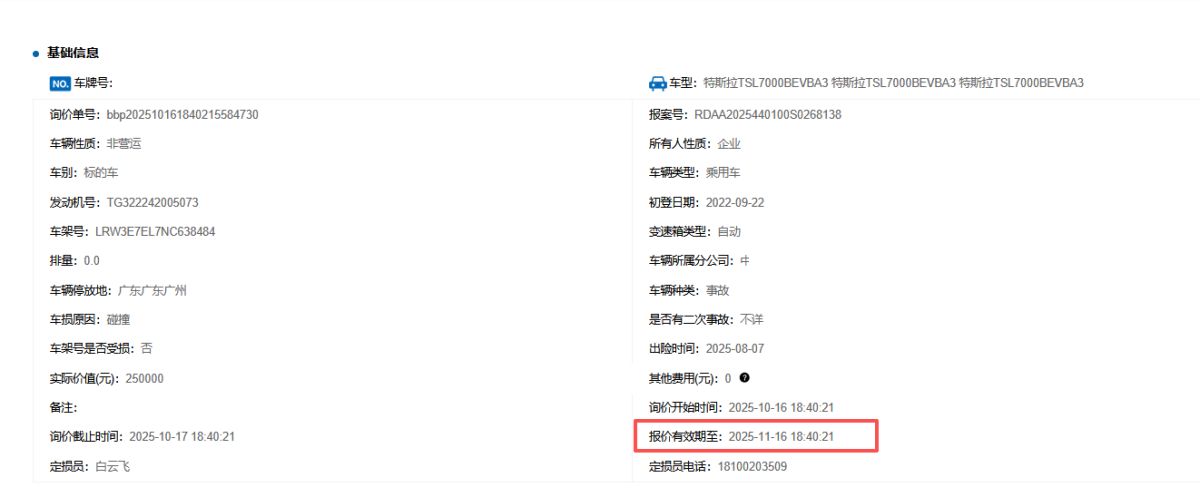 保险金额 ¥250000 预估维修金额 85000
