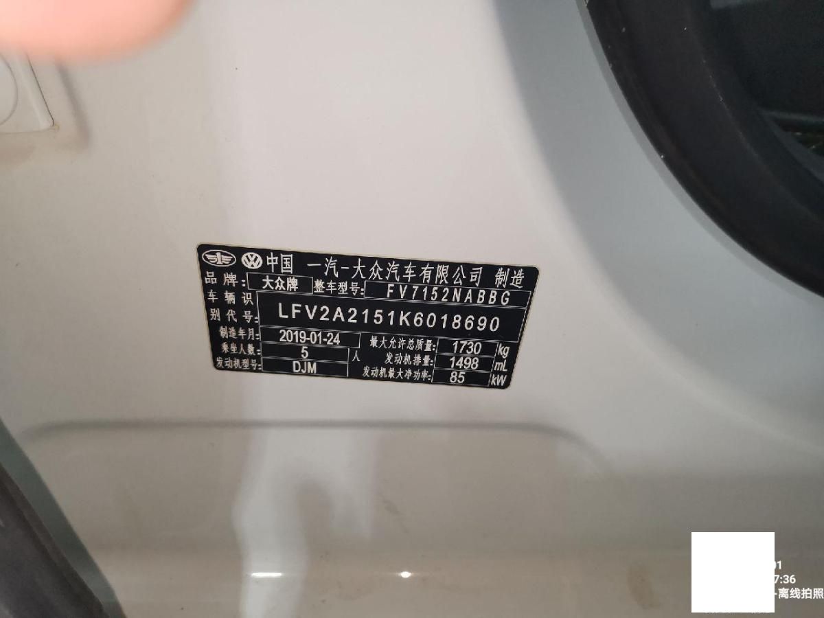 初次登记日期 2019-03-11 车辆名称 大众 宝来