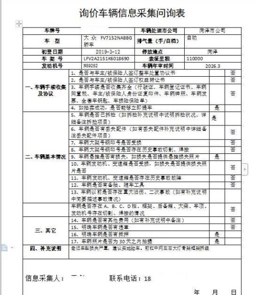 车辆归属地 山东省菏泽 车辆停放仓库 山东省菏泽市