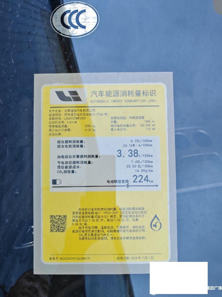 理想1号商品车,未销售,车牌号杜撰,车辆有少量拆解。定型可能不够准确,以实际车架号为准