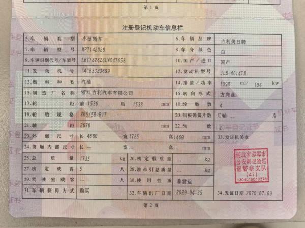 车牌号 冀****** 品牌 吉利