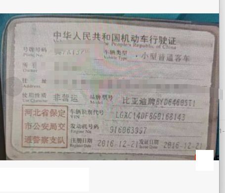 车牌号 冀****** 品牌 比亚迪