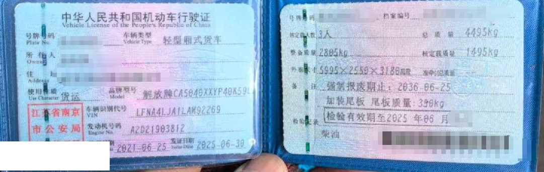 初次登记日期 2021-06-25 车辆名称 解放 解放载货汽车