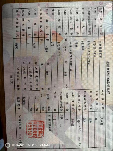 初次登记日期 2021-03-29 车辆名称 大众 探岳
