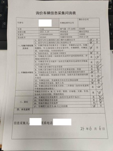 车架号是否受损 使用性质 非营运