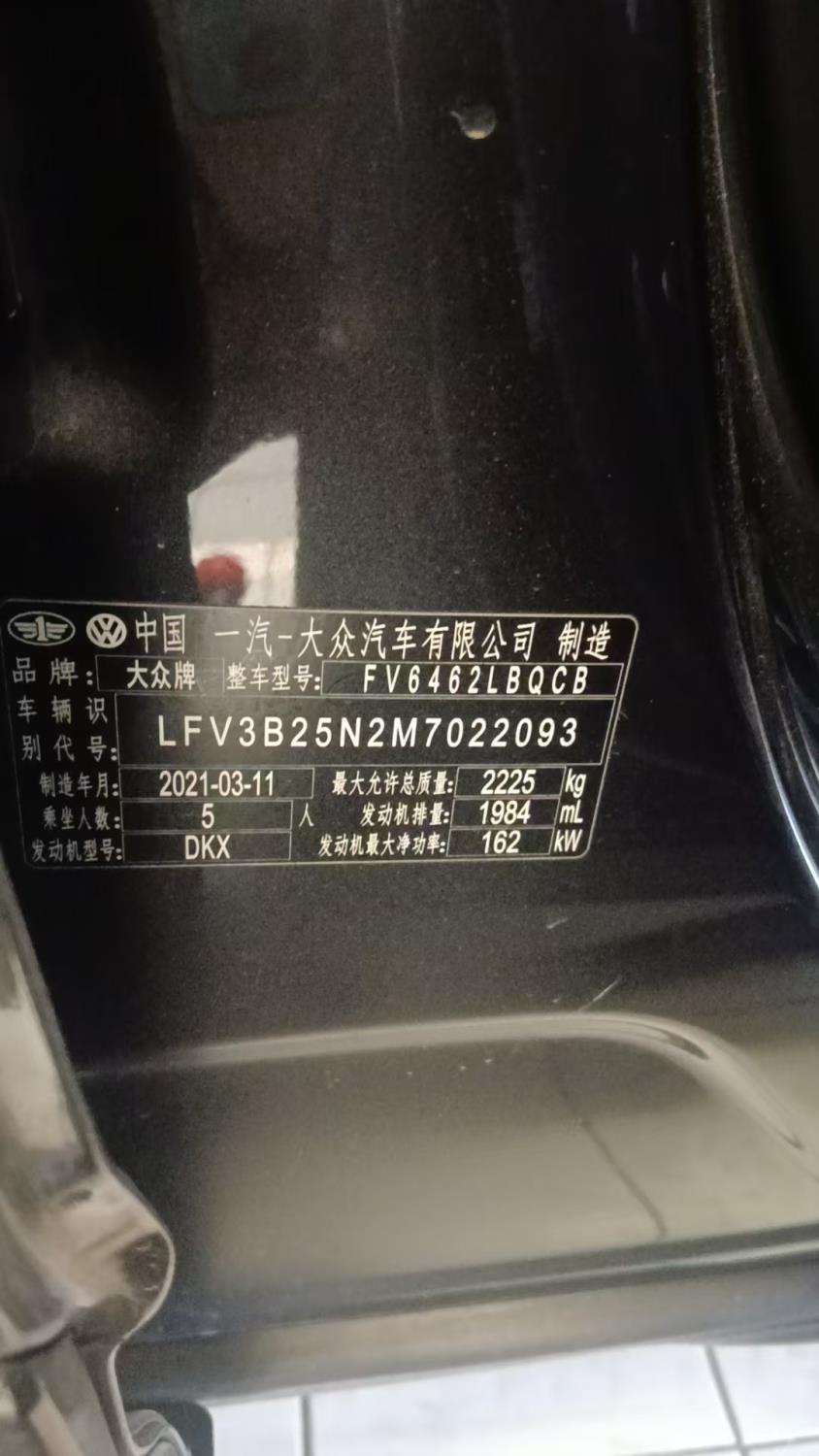 底盘号码 LFV3B25N2M7022093 变速箱类型 自动