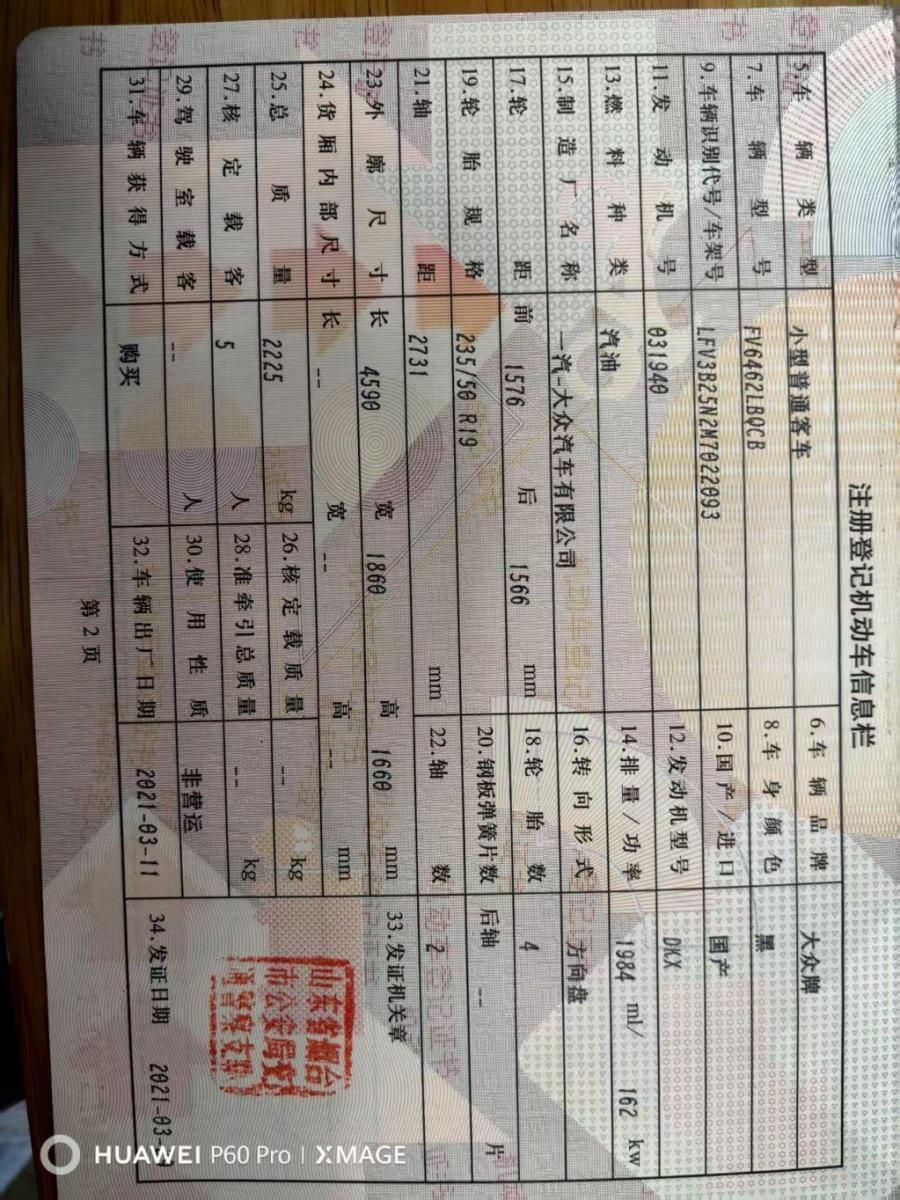车牌号 鲁****** 品牌 大众