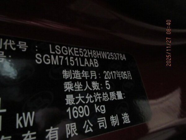 底盘号码 LSGKE52H8HW253784 变速箱类型 手自一体