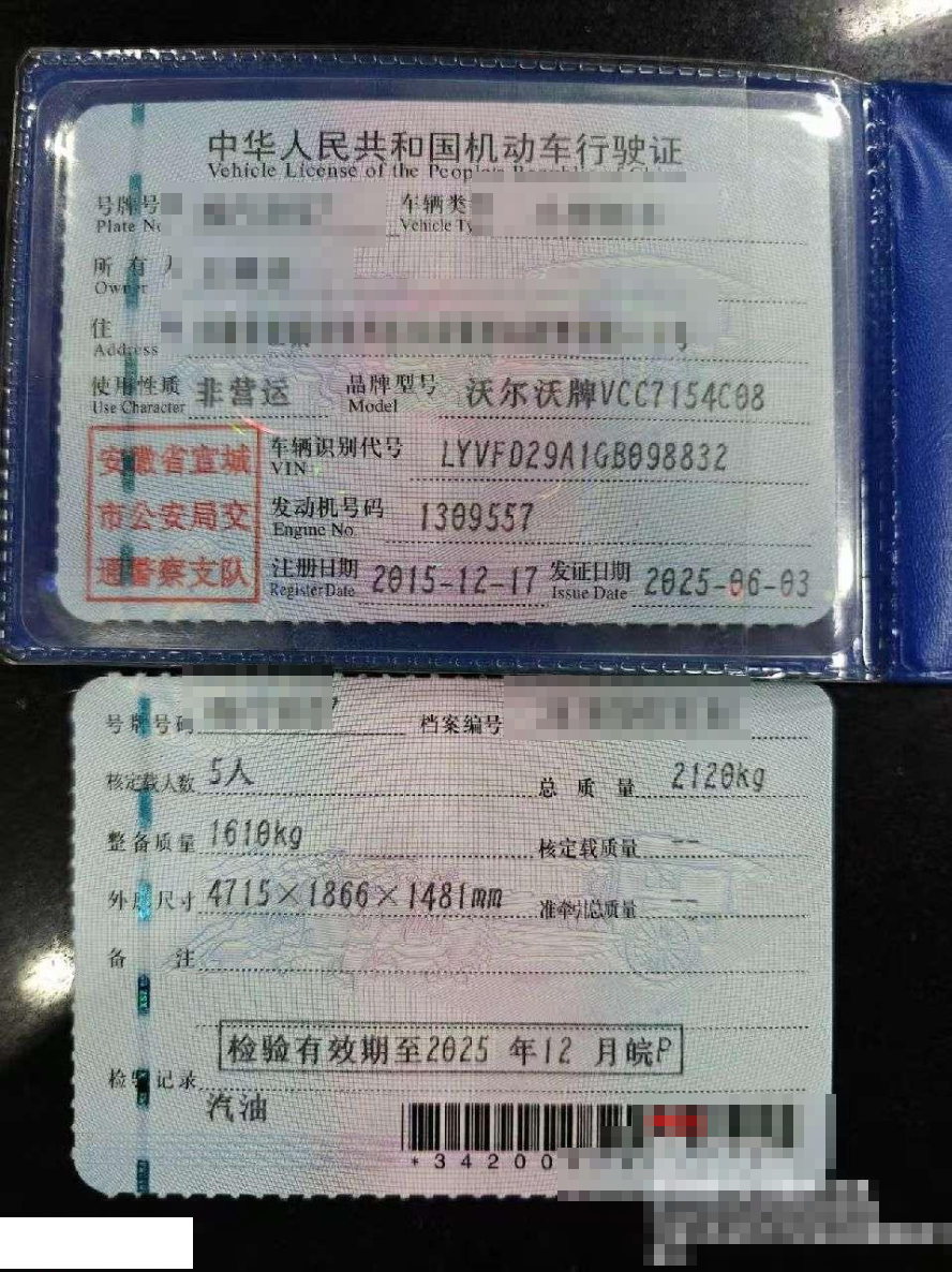 车牌号 皖****** 品牌 沃尔沃