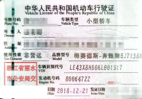 车牌号 浙****** 品牌 奔驰