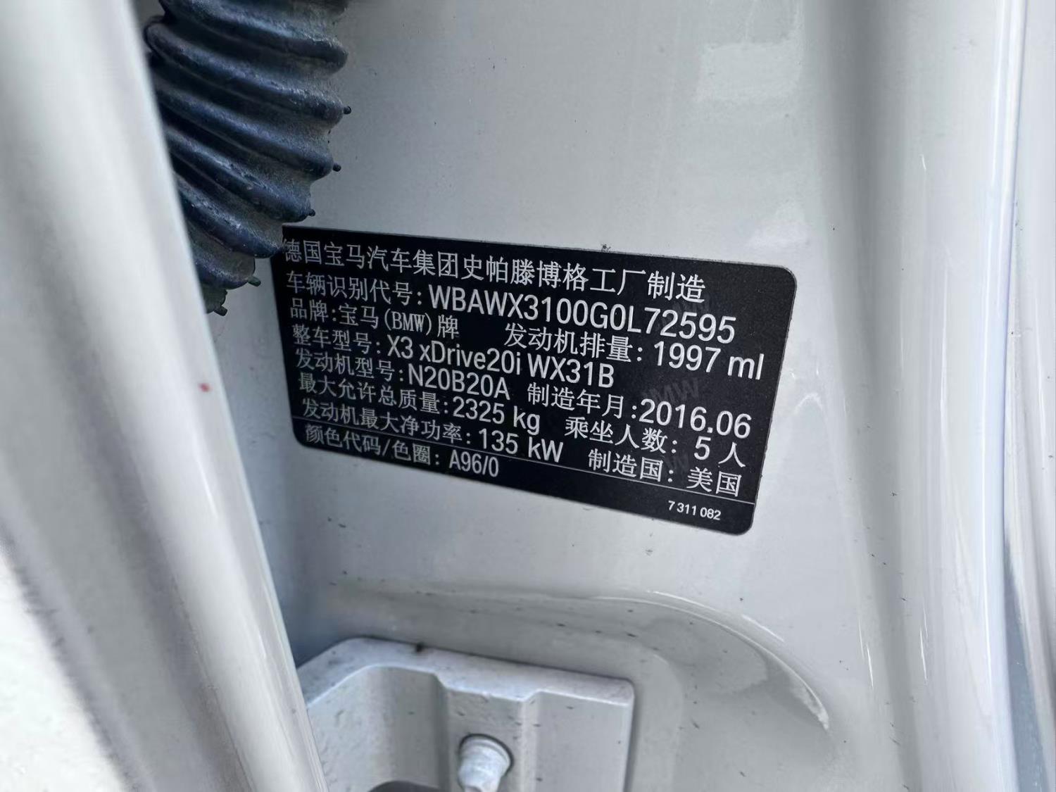 初次登记日期 2016-10-26 车辆名称 宝马X3