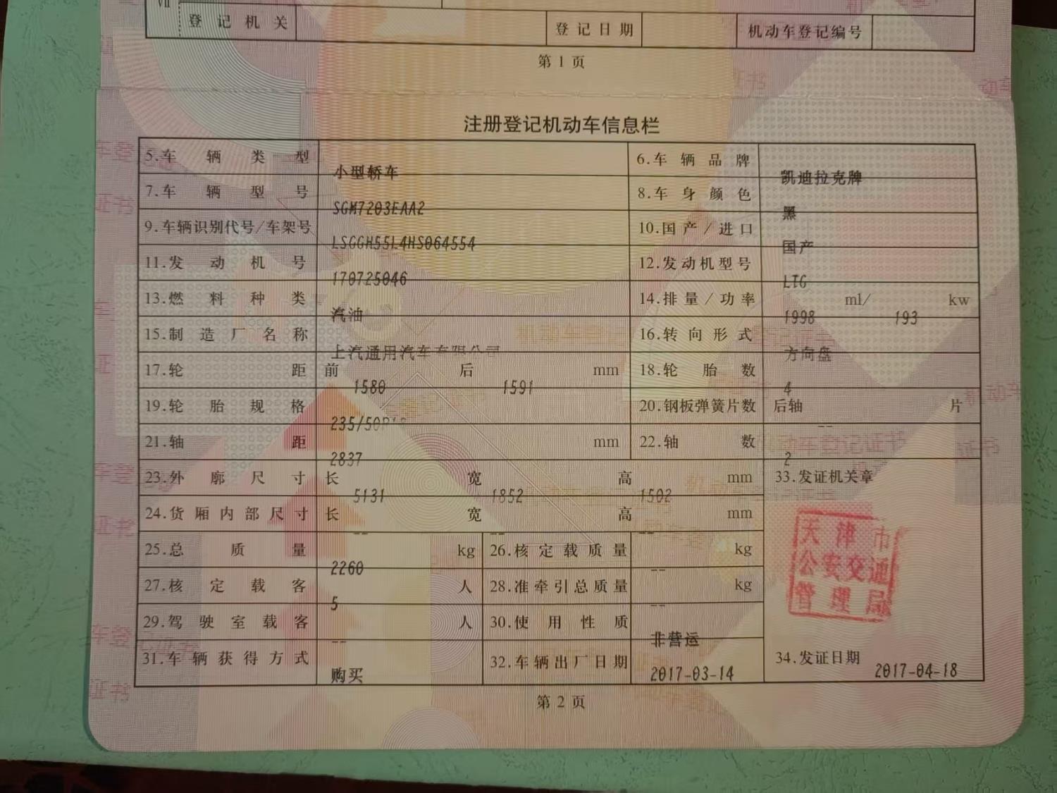 初次登记日期 2017-04-18 车辆名称 凯迪拉克XTS
