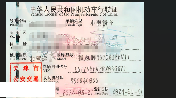 初次登记日期 2024-05-27 车辆名称 极氪007