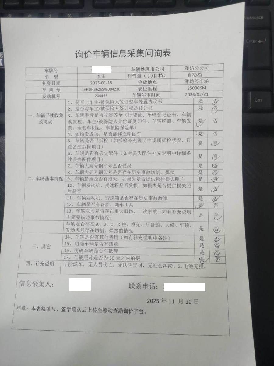 拍卖编号 N202511280866 事故类型 碰撞车