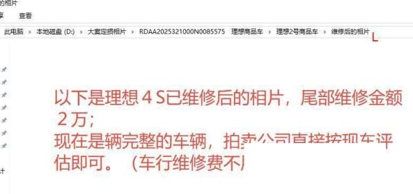 理想2号商品车,未销售,车牌杜撰,请留意处理 / 另外尾部轻微受损,估损2万,该车4S店已维修好, 详见维修后相片,现在是完整车辆。原维修费拍卖公司不用理会。