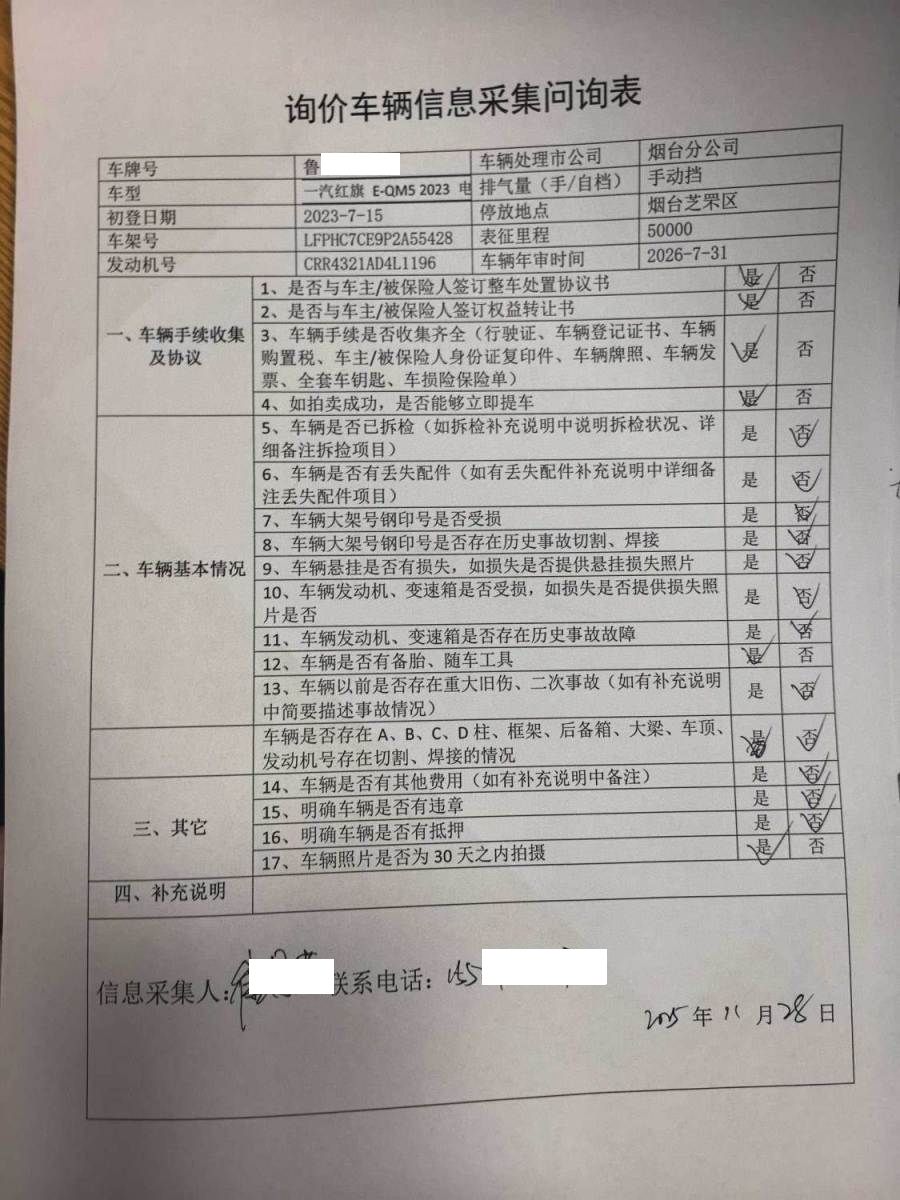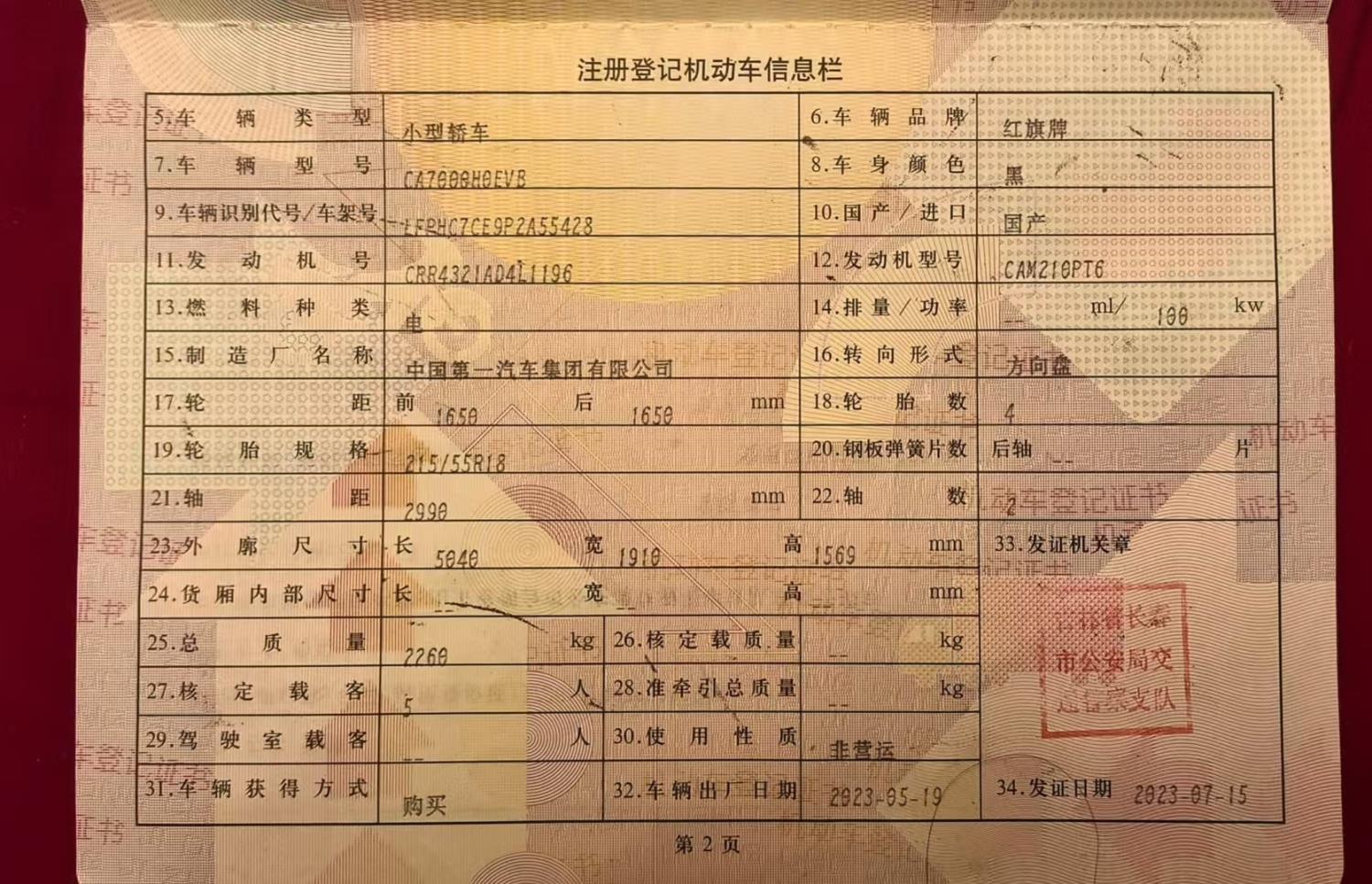 初次登记日期 2023-07-15 车辆名称 红旗E-QM5