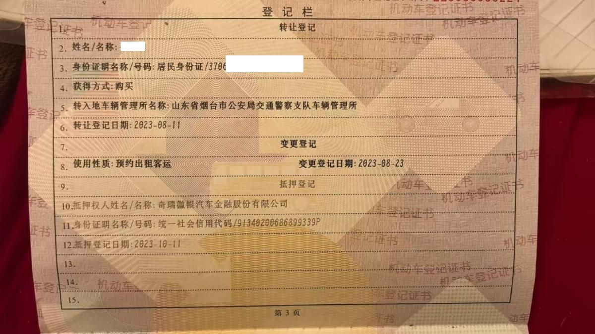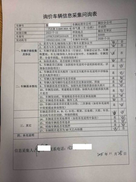 车架号是否受损 使用性质 预约出租客运