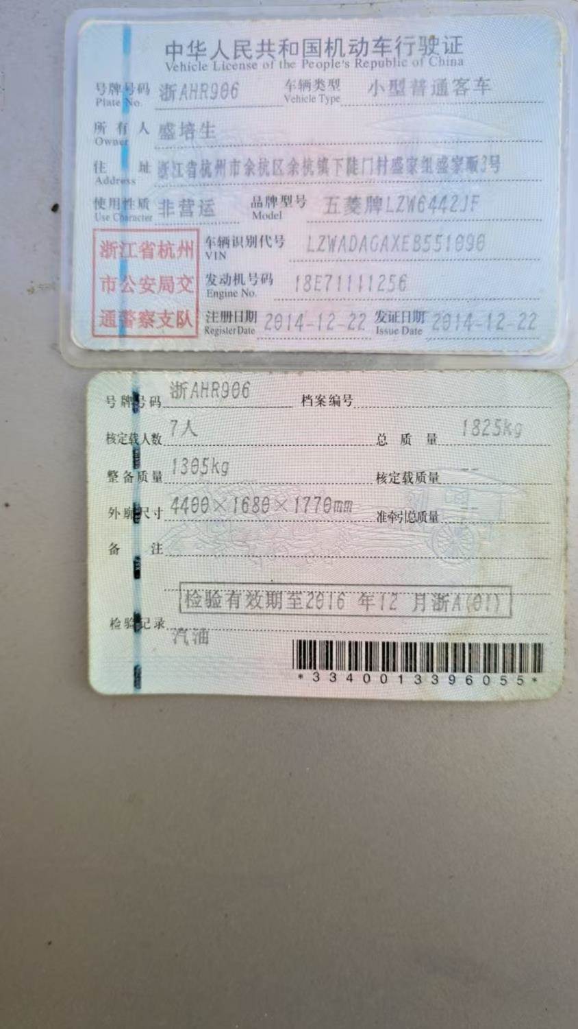 车牌号 浙****** 品牌 五菱