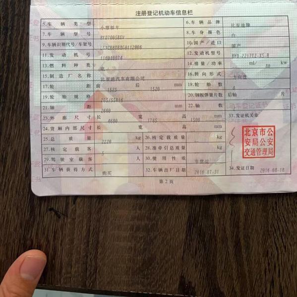 初次登记日期 2016-08-18 车辆名称 比亚迪e5