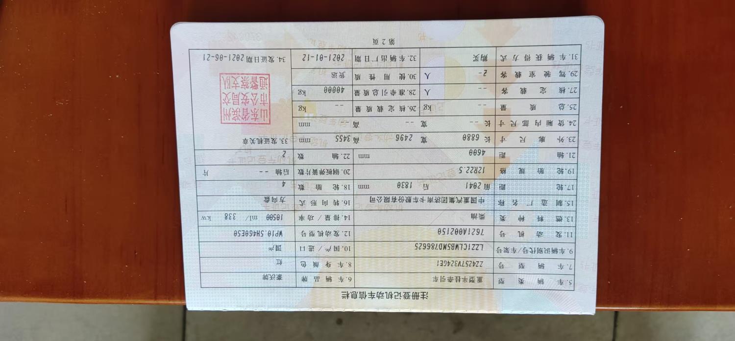 初次登记日期 2021-06-21 车辆名称 豪沃 HOWO-TX7