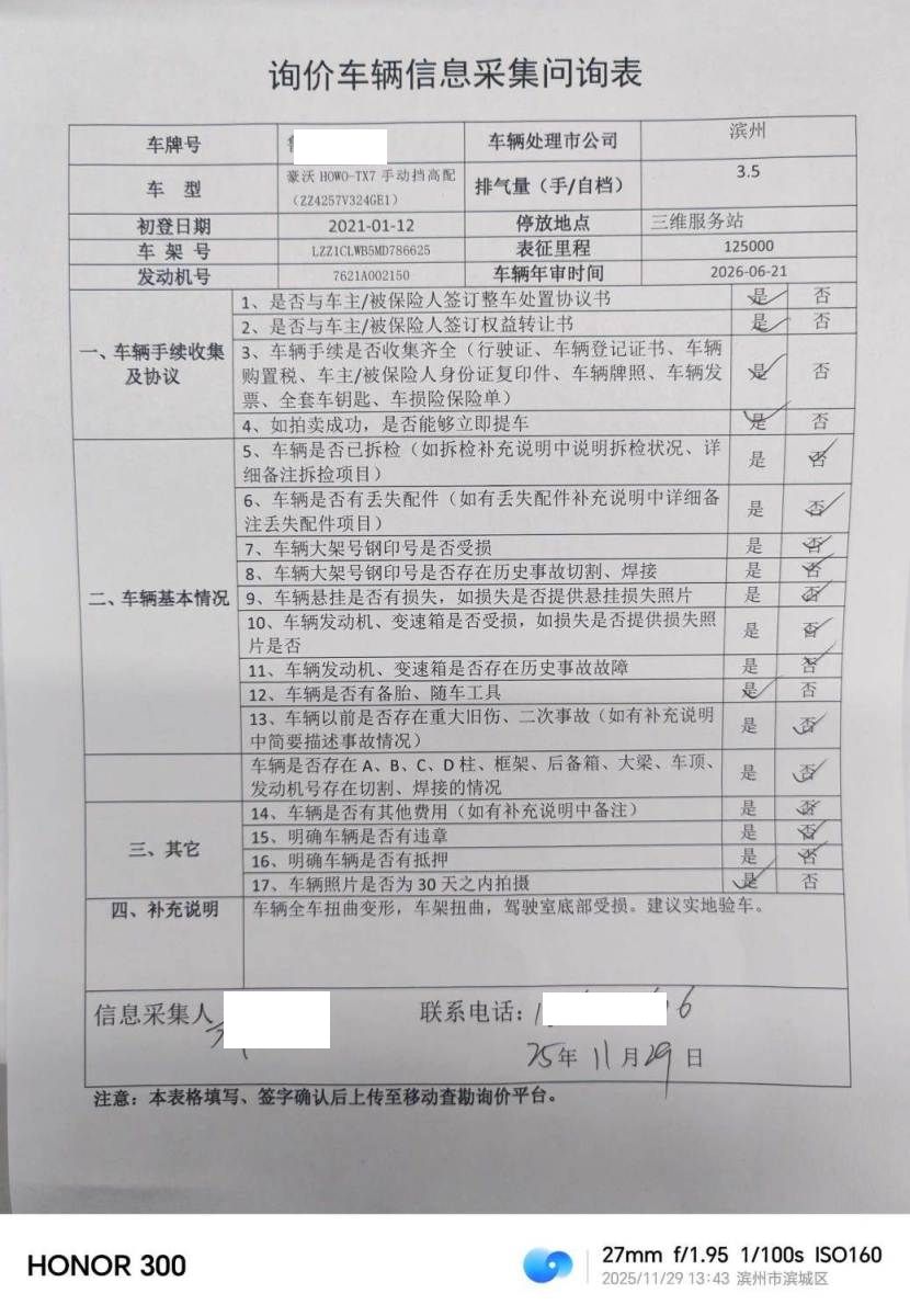 车架号是否受损 使用性质 货运